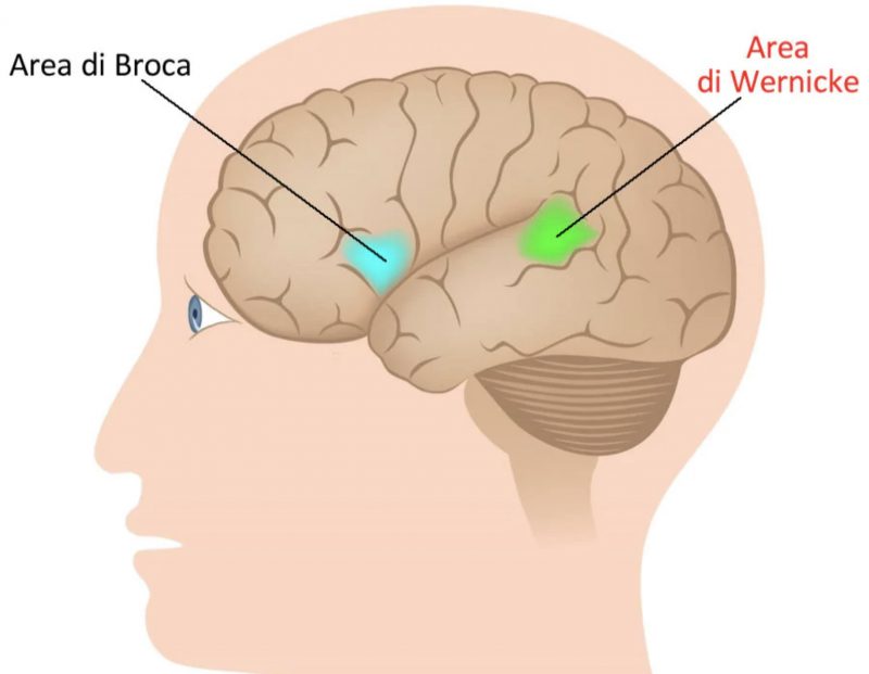 Medico. Le due aree su cui è stato possibile osservare questi cambiamenti sono oggi conosciute come area di Wernicke ed area di Broca. Rispettivamente preposte alla ricezione ed analisi uditiva ed alla organizzazione del linguaggio, Maffei ci spiega che entrambe le aree sono individuabili nell’emisfero sinistro del nostro cranio, dove risiede la stessa capacità del pensiero. È allora possibile immaginare come lo sviluppo di queste due aree abbia determinato un cambiamento non solo nella capacità comunicativa, ma anche nell’abilita del ragionamento e dell’elaborazione del pensiero: la comunicazione attraverso gesti permette un’informazione visiva immediata e diretta, ma non richiedendo una elaborazione dei contenuti comunicati, non permette un’interpretazione linguistica di tali contenuti e, soprattutto, una successiva organizzazione, attraverso le parole, di una narrazione propria di senso compiuto.